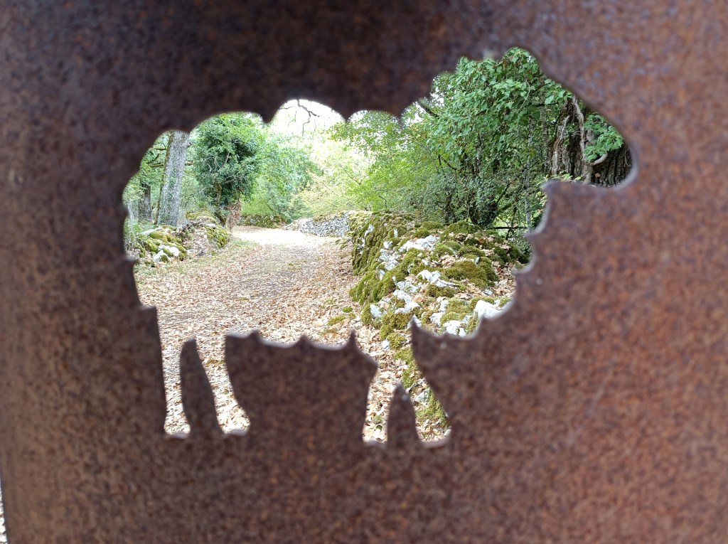Une femme et un chien, sur les Chemins vers Saint Jacques de Compostelle : en bivouac de Figeac à Pamplona…