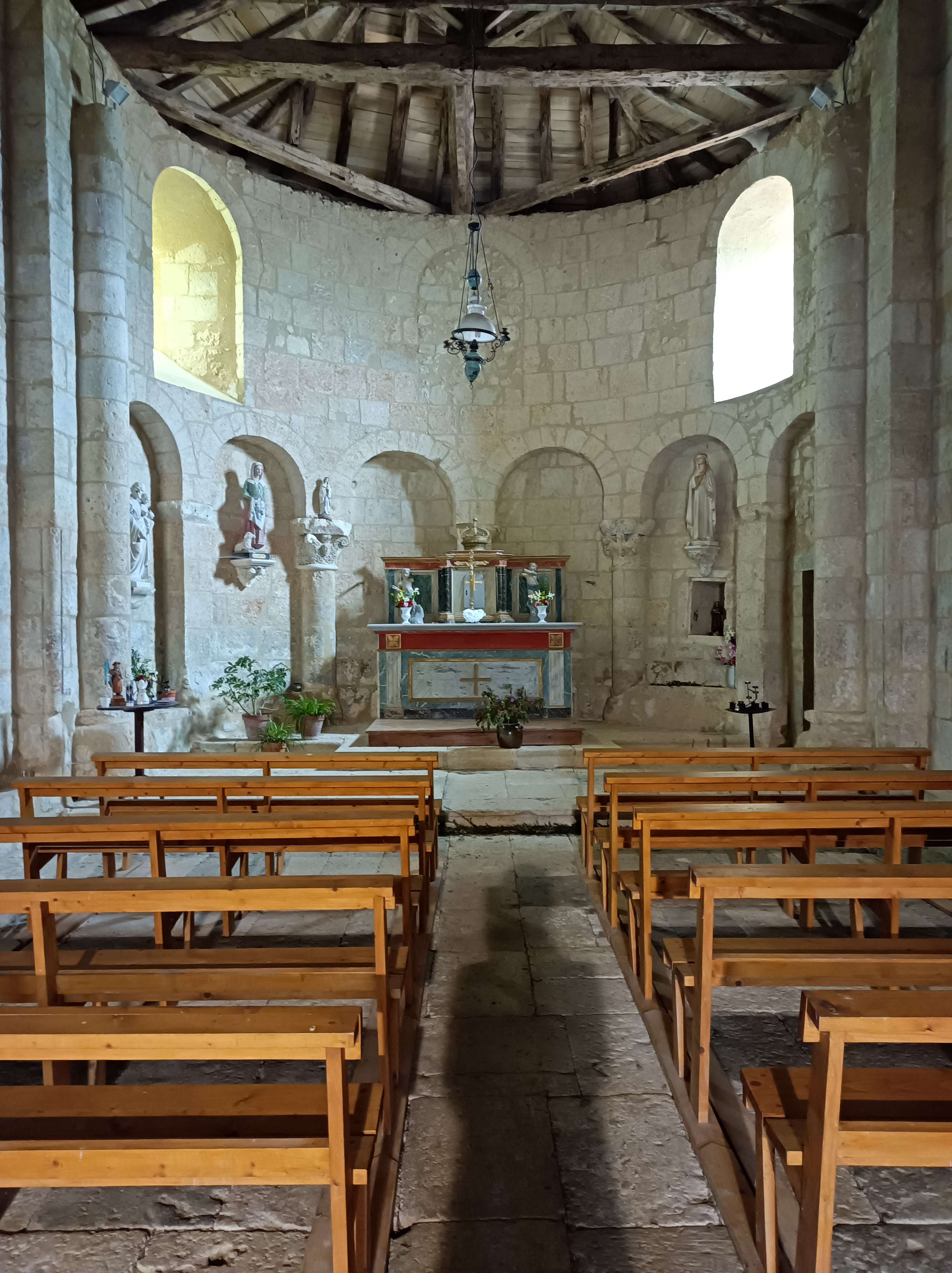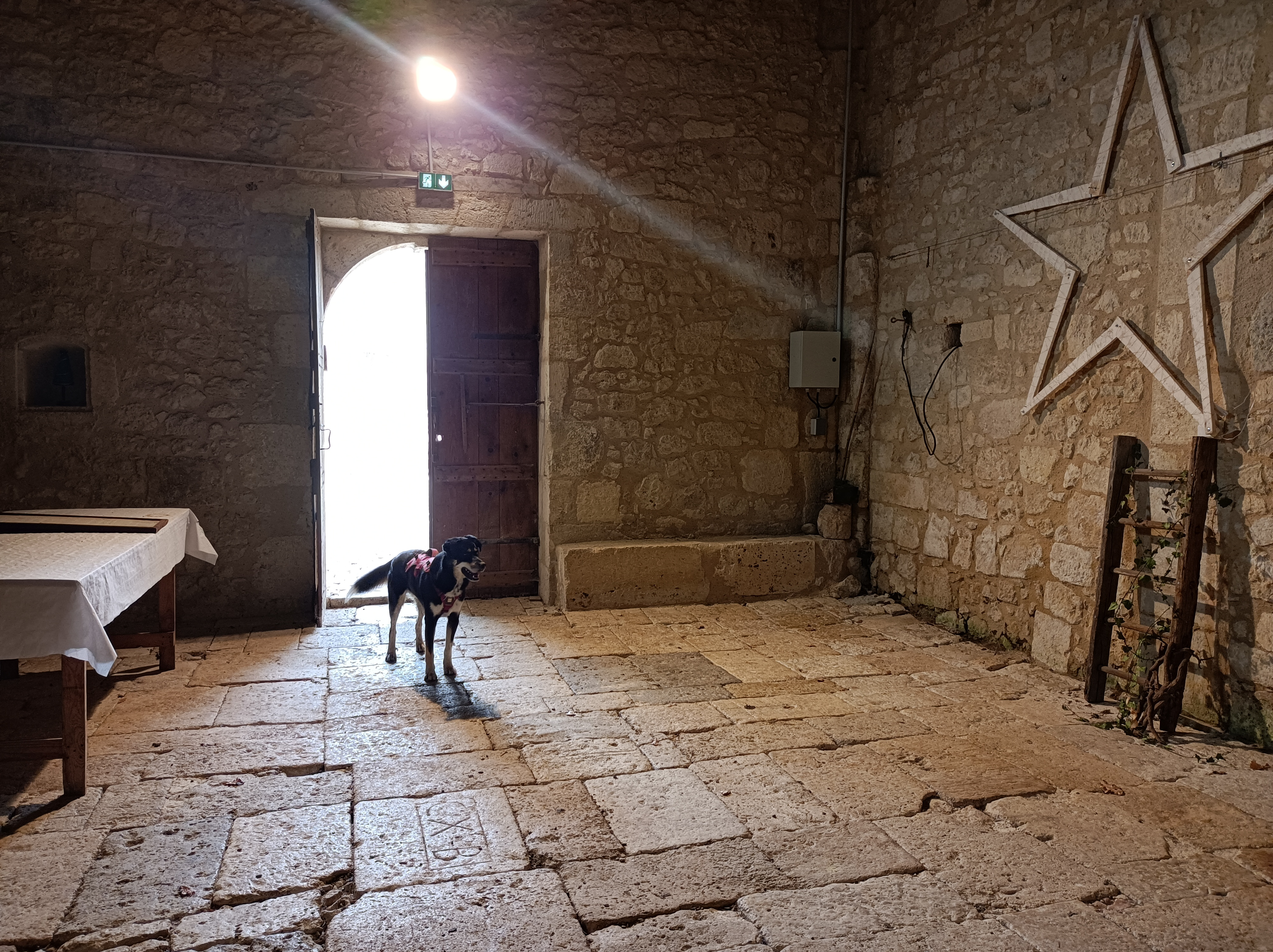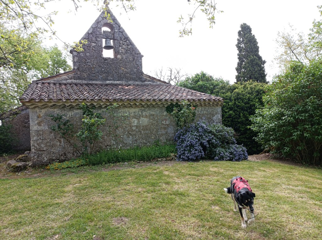 Nous sommes repartis de Lectoure en duo Coco et moi. Nous avons rapidement rencontré Sylvie sur le chemin pour marcher, que dis je !? Courir jusqu’à Marsolan ! 9km parcourus en 1h45 ! En arrivant dans le village je n’ai pas compris ce qu’il c’était passé…! Bien en avance sur l’étape j’ai pris une bonne heure de pause au café-épicerie du village avec petit déjeuner et boîte de sardines pour Coco. De quoi repartir en forme pour la petite dizaine de kilomètres qui nous séparait de la Chapelle Sainte Germaine un peu avant Condom. C’est sur cette route aussi que nous avons croisé Jacques qui, parti de chez lui (Belgique) il y a 8 mois, rentre doucement mais sûrement pour reprendre le travail après une année sabbatique pour « faire Le Chemin ». Descendu jusqu’à Fisterra par la voie de Tour et le Camino Francès, il remonte par le Camino del Norte et la voie du Puy en Velay. De quoi raviver notre programme de voyage pour ce nouveau départ ! J’aime beaucoup croiser les gens qui « reviennent » ça me donne beaucoup de force et de sérénité pour continuer. Et avec une soirée de presque solitude dans cette magnifique Chapelle en compagnie des lièvres et des faisans, je laisse divaguer les pensées vers le rêve de poursuivre ce voyage pour toute une vie…