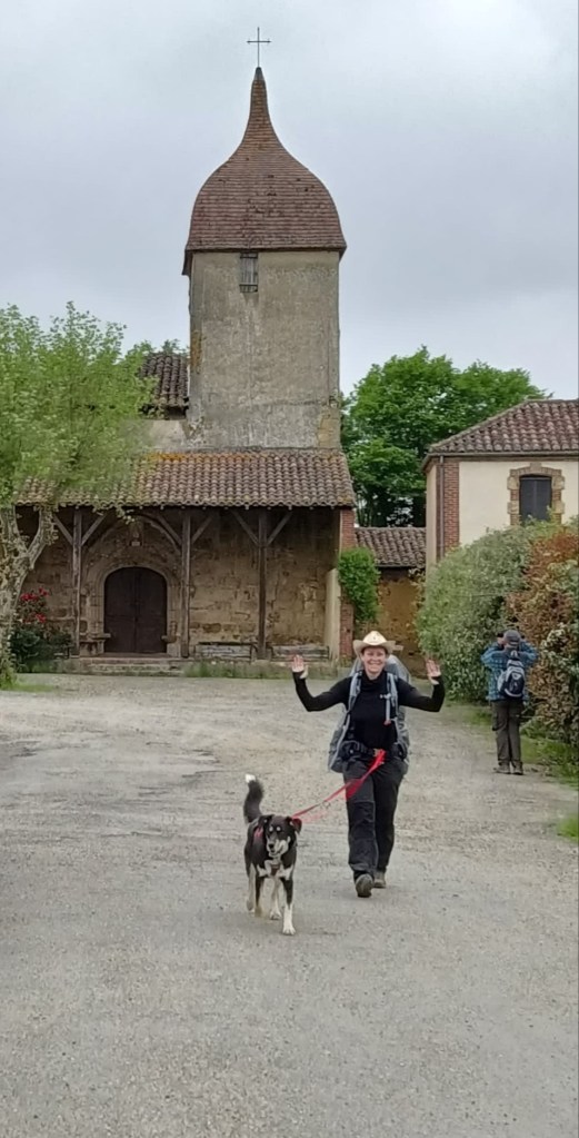Des rencontres furtives et à tirage unique car nous marchons deux fois moins que les autres donc on se perd vite de vue… Pareil pour les rencontres des hospitaliers et des hôtes qui tiennent les gîtes. Aujourd’hui nous avons fait halte chez Liès qui a acheté le gîte de Lanne Soubiran en Août dernier. Super accueil thé/café/boissons en libre service et donativo. Ils veulent également faire un bout de chemin avec leurs chiens. Je me suis vue de l’autre côté de l’interrogatoire : il semblerait que maintenant ce soit moi qui donne les réponses aux questions que je me posais il y a quelques mois sur le voyage à pieds avec un chien. Car oui, nous avons cheminé trois semaines depuis ! Déjà. Il me fallait bien ça pour me sentir un peu plus dans l’esprit du Chemin. Hier je lisais sur le cahier d’une Chapelle que c’est seulement après 40 jours de marche qu’une pèlerine sentais enfin le lâcher prise et les bien faits du pèlerinage. Encore de la route à faire alors ! Je saurais que j’aurais lâché prise quand mon sac sera devenu léger et inoffensif pour mes articulations !!!