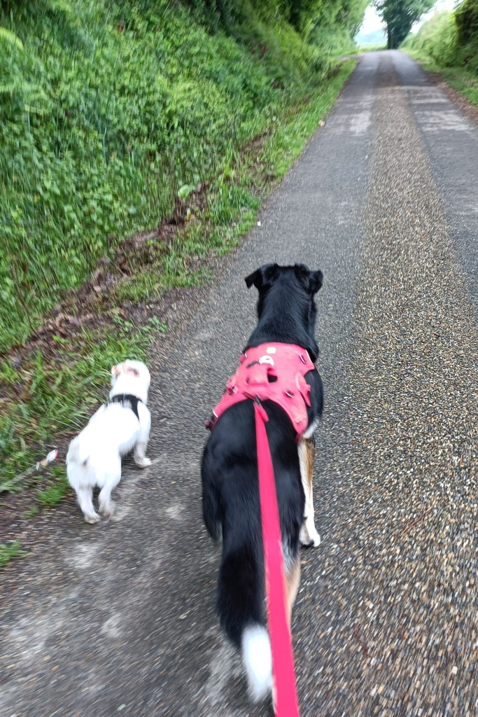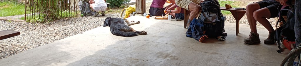 Je mange plus qu’au début du voyage. Pourtant il me reste des réserves…! Mais là j’ai besoin de manger plus et Coco aussi j’ai remarqué. Quand il y a peu de commerces entres les étapes ça fait porter un sac plus lourd de pique nique du coup. Mais ça se fait. Sur 15km c’est ok. 20km c’est difficile et davantage c’est trop, autant pour Coco que pour moi. Quand je trouve un endroit pour dormir je pose mon sac en espérant le retrouver complet à l’endroit où je le laisse et en faisant confiance aux gens et je vais marcher à vide pour réactualiser mon confort physique. On se fait une petite balade le soir aussi, tranquillement après manger.